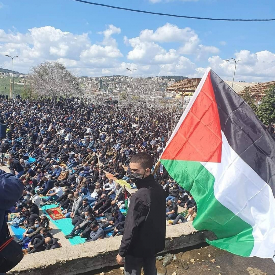 وشارك في التظاهرات الآلاف من المجتمع العربي بعد تأدية صلاة الجمعة في السوق البلدي.